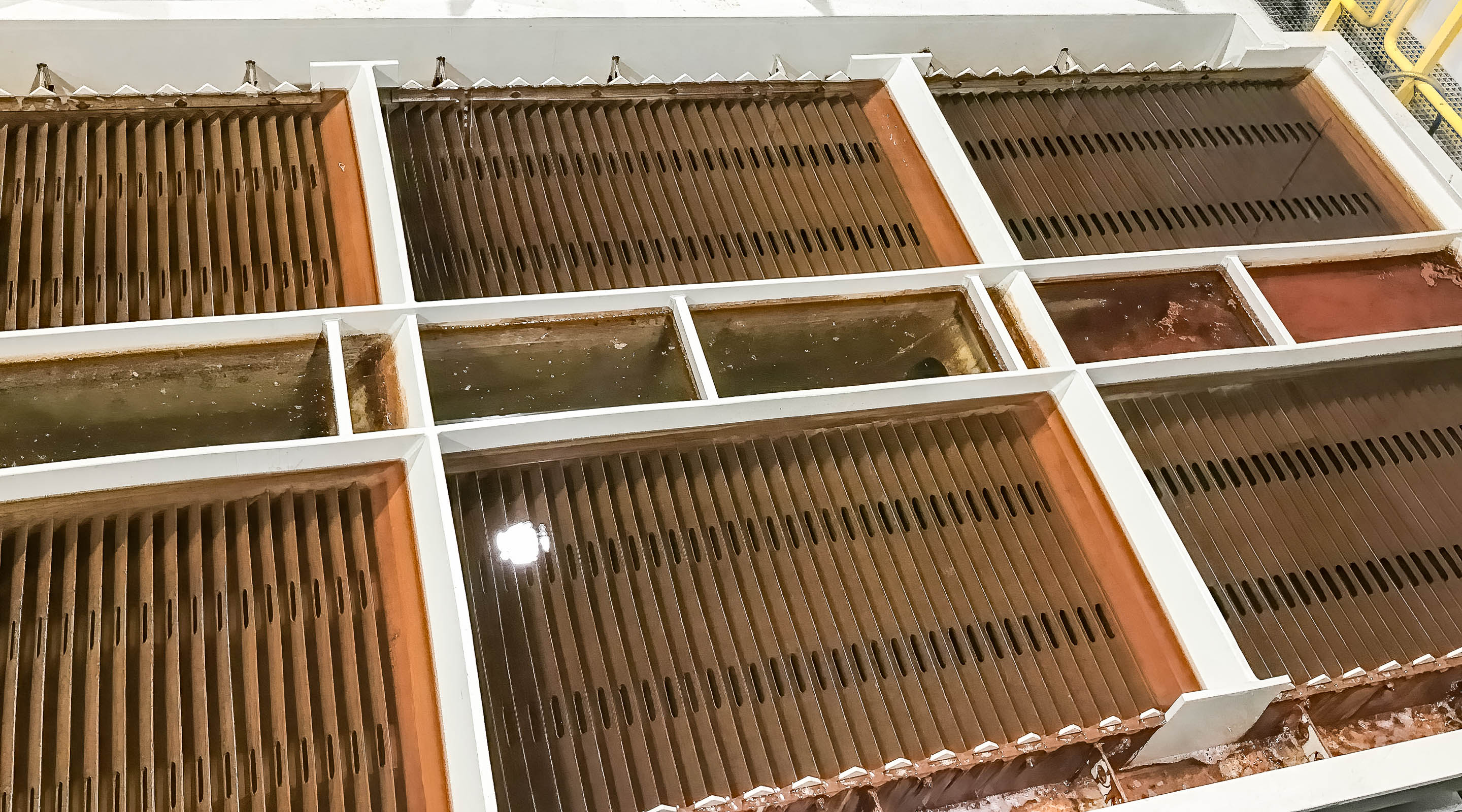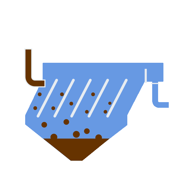 Heavy solids contained in the wastewater, such as sand, clay, enamel, dirt particles, metal hydroxides, or metal abrasion sink to the bottom. This process is called sedimentation; it is made use of in lamella separators in industrial wastewater treatment.
